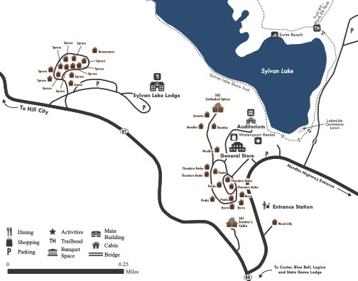 The current Sylvan Lake Lodge was built in 1937, with a new wing of lodge rooms added in 1991. There are 31 cabins in the pine- and spruce-covered hillside, including sleeping cabins, a honeymoon cabin, and housekeeping cabins. The Senator’s Cabin has five rooms, a full kitchen, and sleeps ten; and the largest cabin is the Cathedral Spires Group Cabin. Explore your lodging options below.